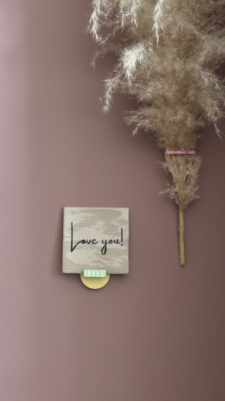 Voeg een liefdevol en stijlvol detail toe aan je interieur met dit keramische tegeltje met de tekst ‘love you’. De combinatie van een zachte beige tint en een zwarte opdruk zorgt voor een rustige, minimalistische uitstraling die in vrijwel elk interieur past.